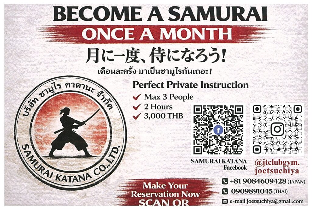 คลาส SAMUYRAI KATANA จัดขึ้นเดือนละครั้ง